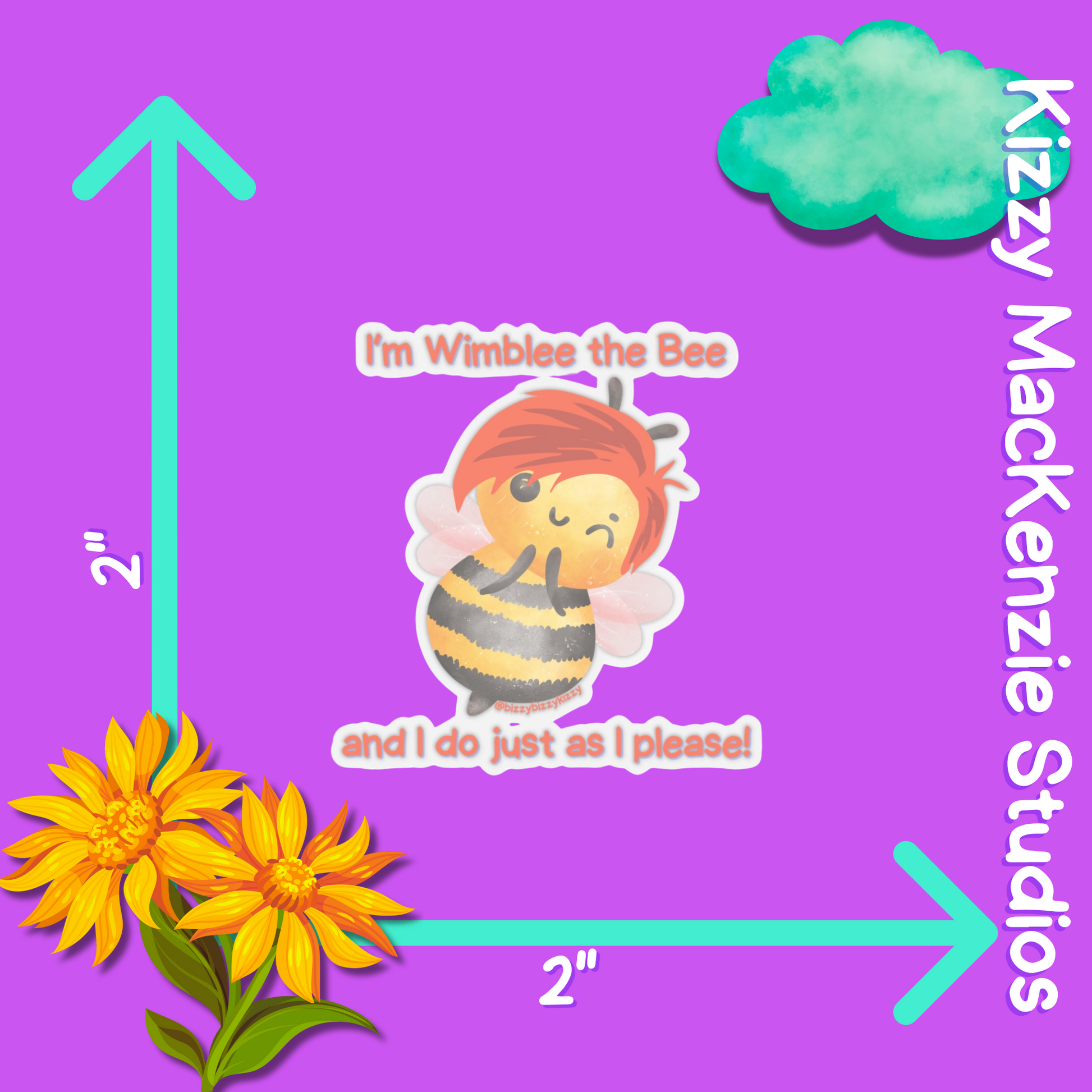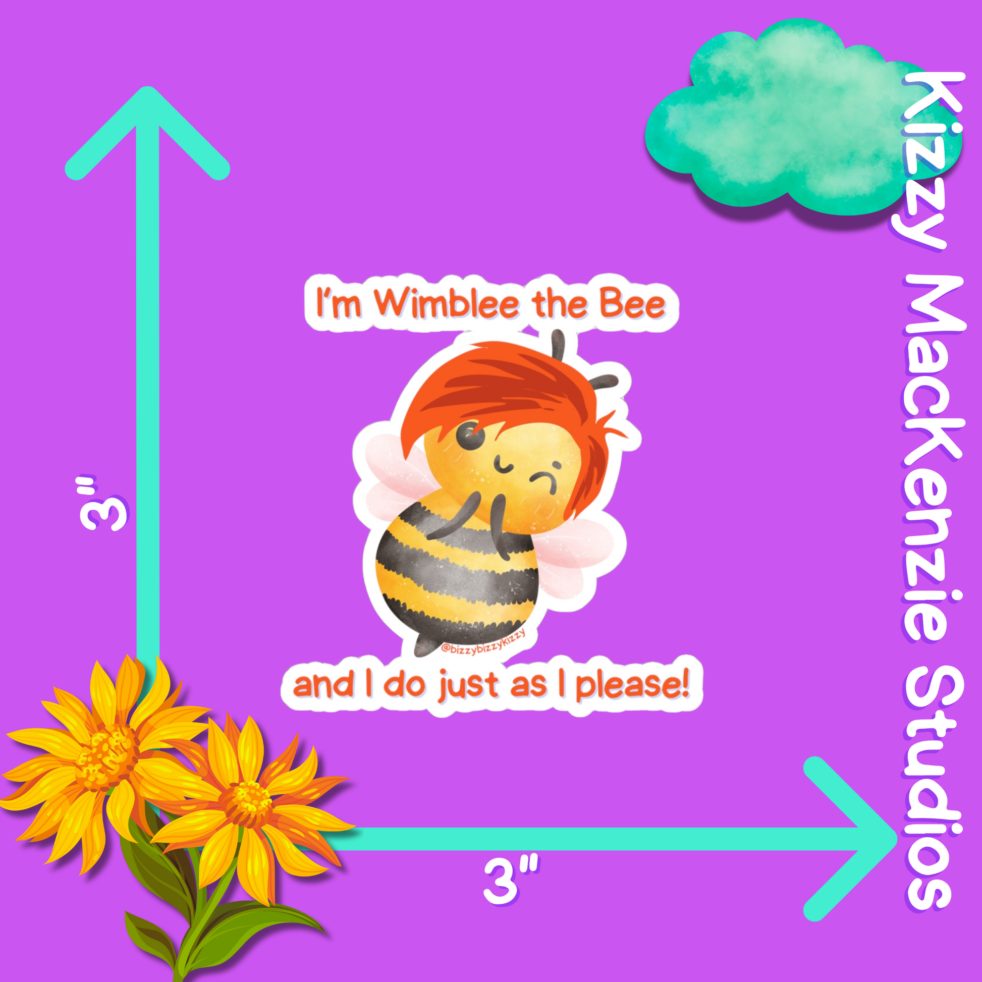Soar to new heights with everyone's favorite pollinator - Wimblee the Bee - with this buzz-worthy indoor vinyl sticker from Kizzy MacKenzie Studios, LLC (@bizzybizzykizzy)!