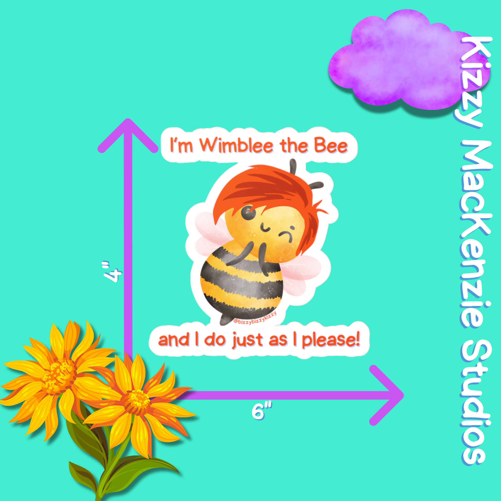 Soar to new heights with everyone's favorite pollinator - Wimblee the Bee - with this buzz-worthy indoor/outdoor vinyl decal from Kizzy MacKenzie Studios, LLC (@bizzybizzykizzy)!