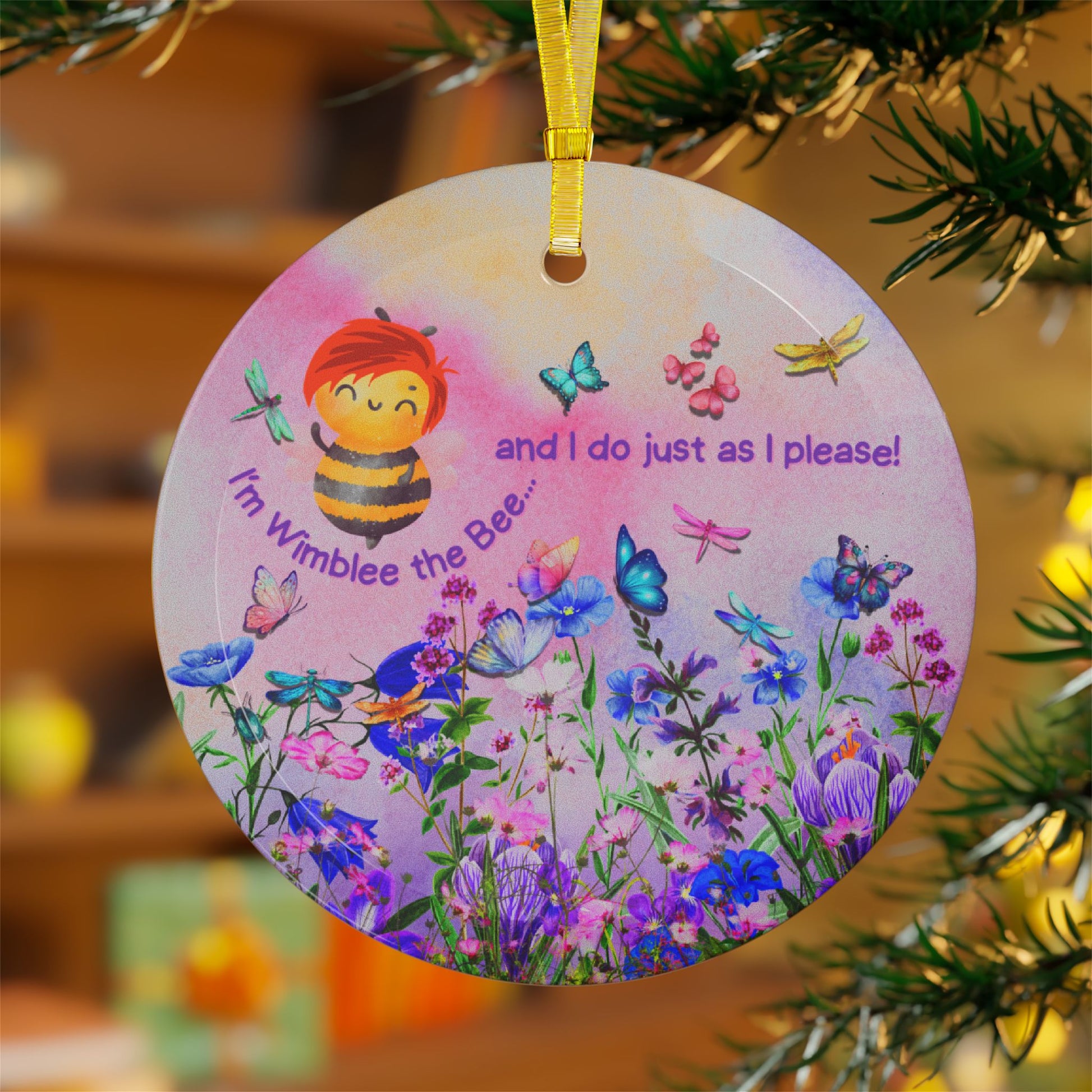 Wimblee the Bee Christmas Ornament Holiday Decor Wildflowers Honey Bee Glass Ornaments Teacher Gift